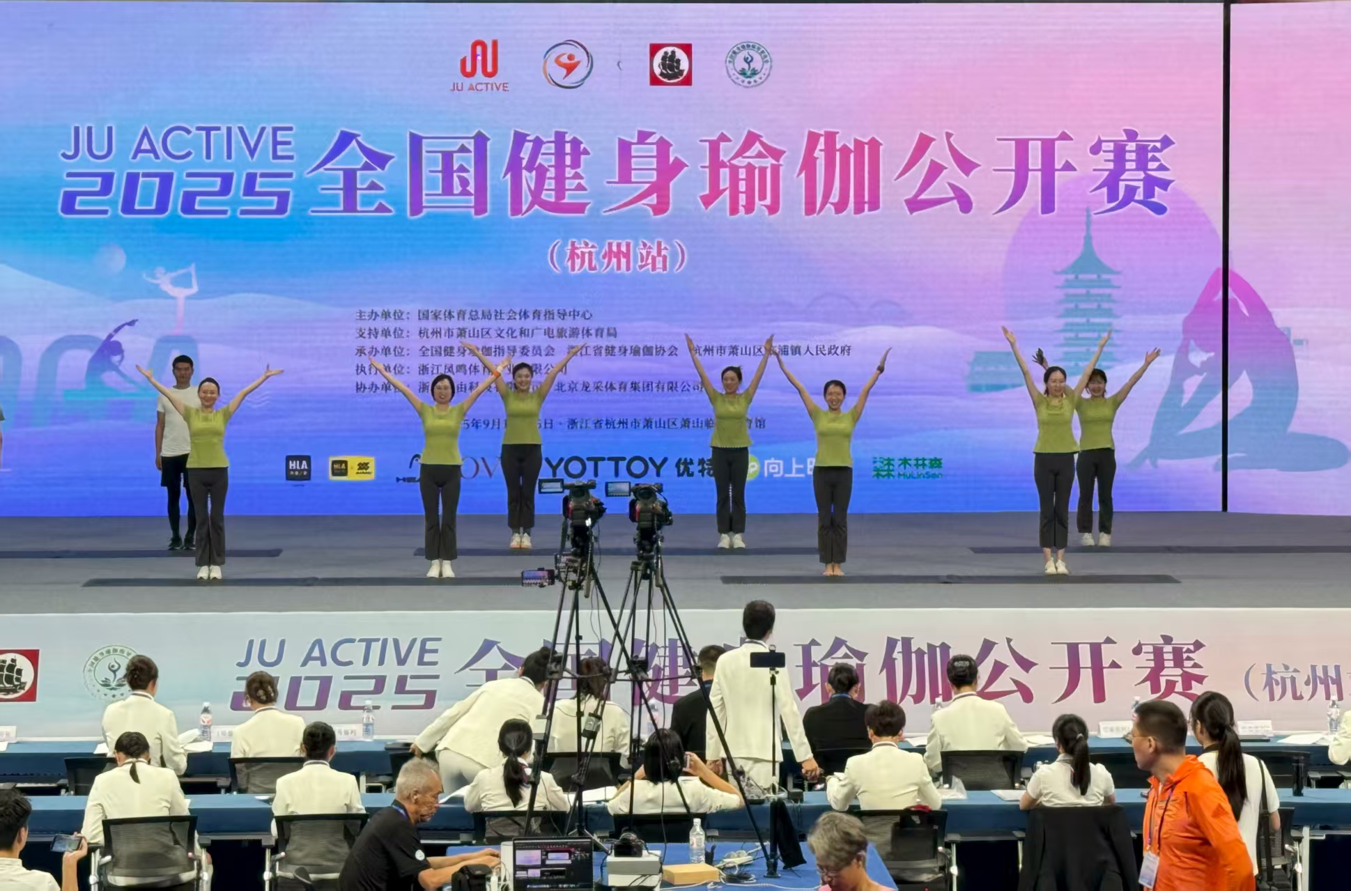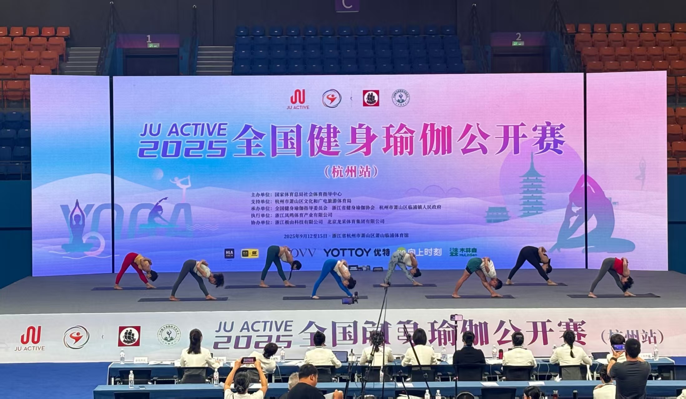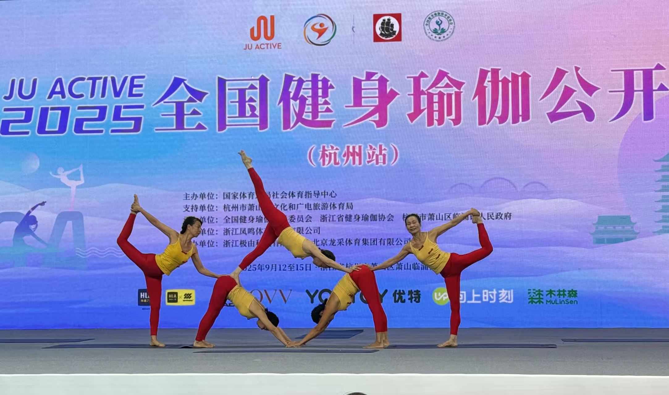 九月的杭州,桂花飘香,秋意渐浓,一场别开生面的视觉盛宴就此拉开帷幕。来自全国各省市共52支健身瑜伽代表队245位运动员及爱好者参赛,分别在社会组、院校组、教工组、段位组四个类别、三个大项中进行角逐,其中既有热爱瑜伽运动的爱好者,也不乏有高校的专业选手。