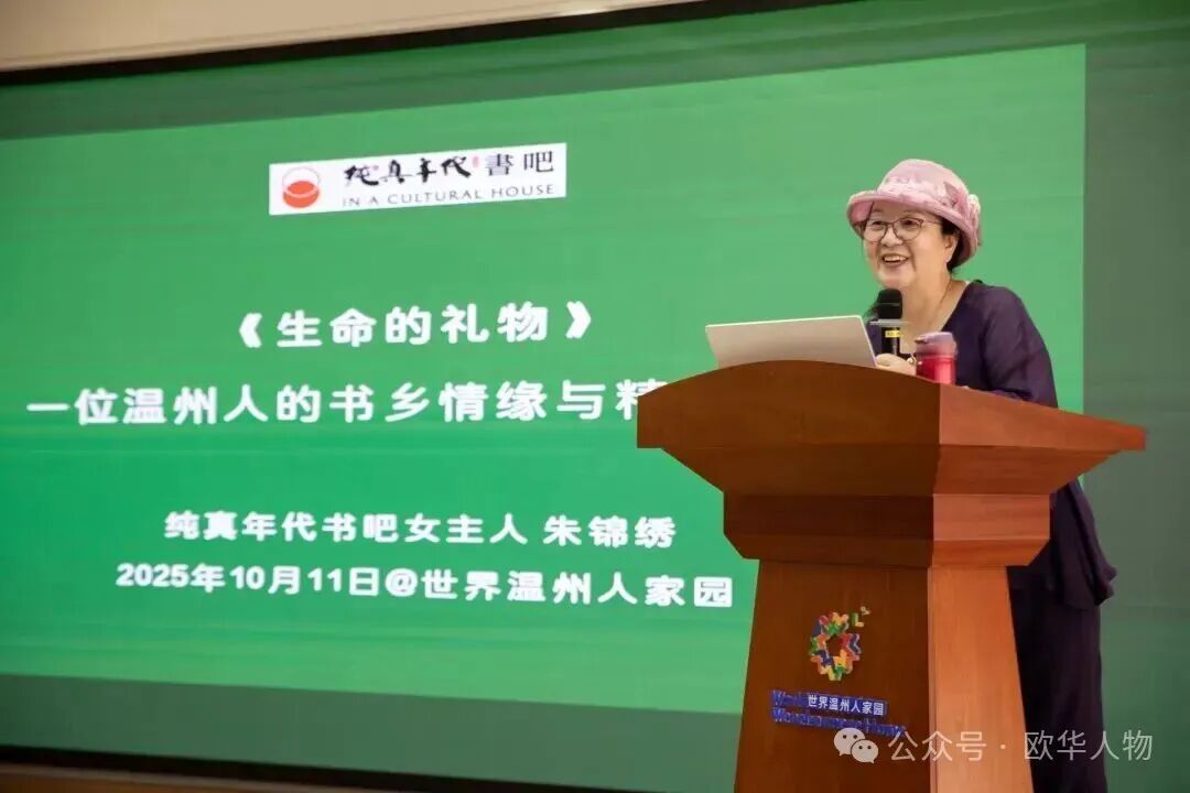 当天,朱锦绣女士带着她的新书《生命的礼物》回到家乡温州,讲述着一对文学夫妻的美好爱情、一位温州女性的乐观生活。台上台下的感动,并非一个悲伤的瞬间,而是一种被纯粹的热爱与不屈的坚守所击中的动容。“生命的礼物”,化作一段段被书香浸润的岁月,在每个人心中激荡起温暖的涟漪。