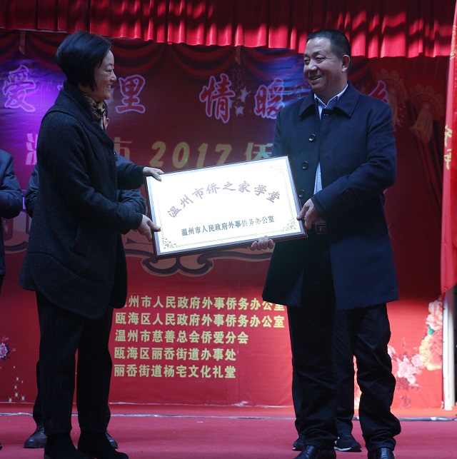 市外侨办主任邱华萍为温州市“侨之家”学堂授牌