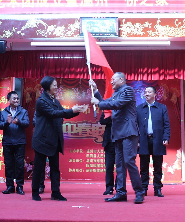 市外侨办主任邱华萍授予“温州市侨爱艺术团”旗帜