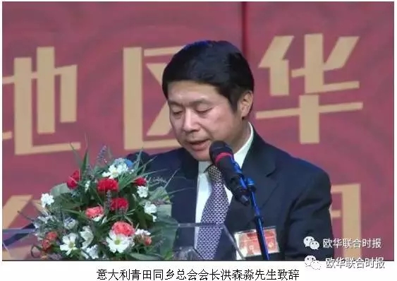 意大利青田同乡总会会长洪森淼先生代表侨界致辞,他向陈仲伟先生当选新一任会长表示热烈祝贺,相信总会将继续秉承过去的优良传统,使会务工作蒸蒸日上,为旅意侨胞提供更多的服务、为建设和谐侨社作出新的贡献。