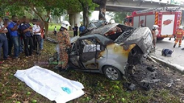 马来西亚一名25岁年轻华裔司机胡俊源(译音)疑双脚被夹在驾驶盘下无法动弹,引擎则瞬间起火燃烧,结果来不及逃生,活活被烧死。