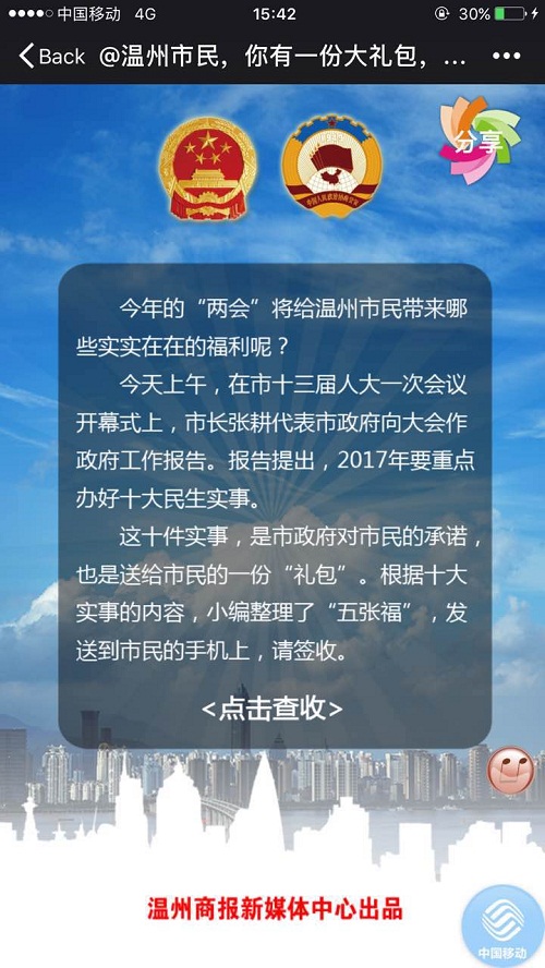 二维码登上政府工作报告 “码上”读懂温州发展“市情”