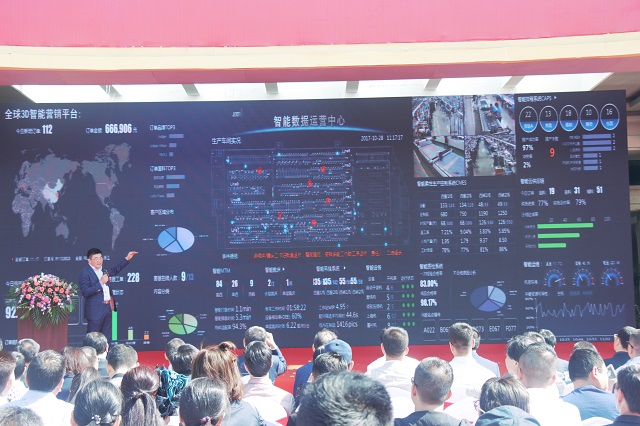 温州庄吉服饰有限公司CEO吴邦东向大家介绍庄吉智能数据运营中心