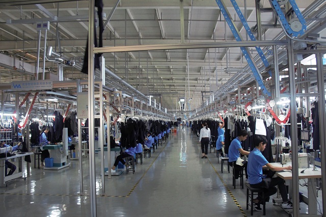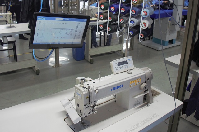 庄吉服饰相关负责人肖风华表示,庄吉的智能生产车间是目前国内单层平面面积最大的西服生产车间,共近10000平方米。新智能工厂,拥有全球最先进的智能生产流水线,也是首条从面辅料仓库到成品入库一体化全智能的生产线。智能工厂利用全智能吊挂系统,完成面辅料到车间到成品入库成套流程,实现了产品与设备、设备与人、人与产品、产品与产品的信息交流,从而实现了柔性化生产。