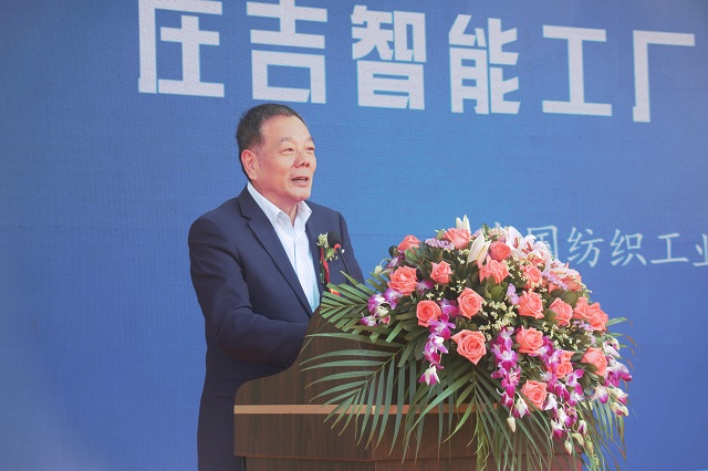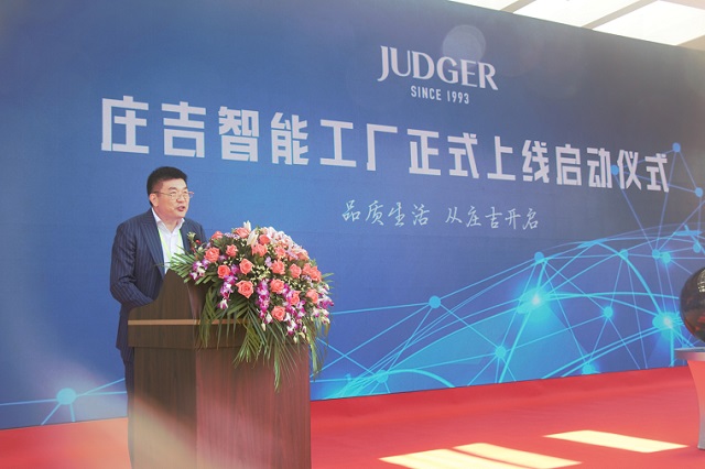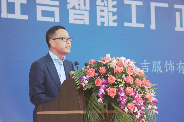 欧华联合时报讯 (记者 陈辉)2017年10月28日上午,庄吉智能工厂启动仪式在庄吉平阳工业园区隆重举行,平阳县县长陈永光、庄吉服饰董事长白桦、中国纺织工业联合会党委书记高勇、中国纺织工业联合会副会长杨纪朝、上海品依信息科技有限公司董事长刘冰出席活动并致辞,中国纺织出版社社长郑伟良、中国纺织建设规划院院长冯德虎、中国服装协会副秘书长杜岩冰等嘉宾应邀出席启动仪式,活动由温州庄吉服饰有限公司CEO吴邦东主持。