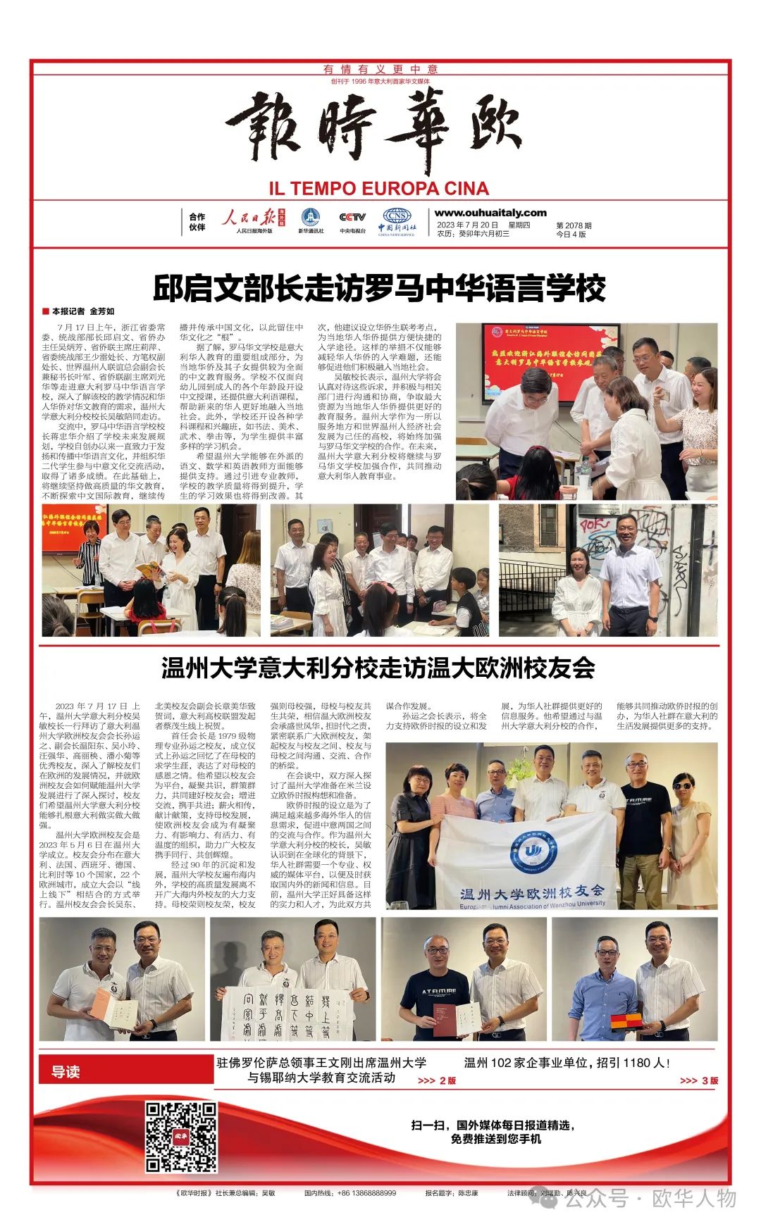 欧侨时报的设立是为了满足越来越多海外华人的信息需求,促进中意两国之间的交流与合作。作为温州大学意大利分校的校长,吴敏认识到在全球化的背景下,华人社群需要一个专业、权威的媒体平台,以便及时获取国内外的新闻和信息。目前,温州大学正好具备这样的实力和人才,为此双方共谋合作发展。