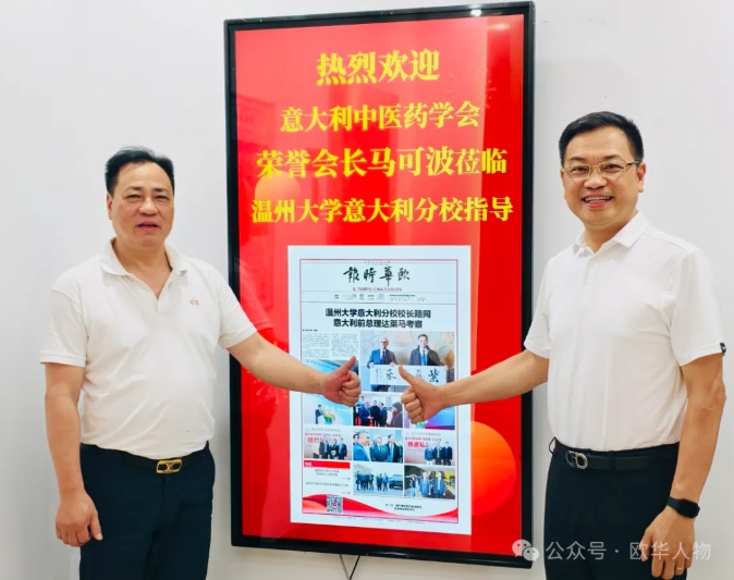 本报讯(记者苏伊甸)6月18日,意大利中医药学会荣誉会长马可波莅临考察温大意大利分校、“一带一路”中国品牌世界行(“一带一路”丝路学院)指导,温州大学意大利分校校长吴敏陪同。