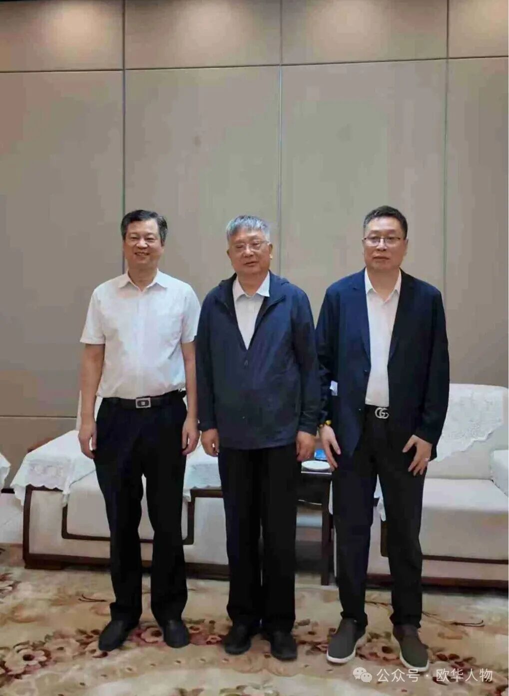 考察结束后,成都金牛区区长郭小平(左一)与冯长根院士(左二)、涂飞云(右一)先生合影留念