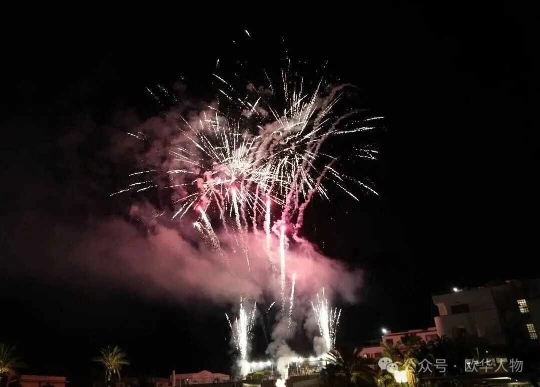 当晚,庆典在盛大的焰火晚会中落下帷幕。在地中海的夜色中,绚烂的焰火腾空而起,照亮了萨拉森沙滩的夜空,也照亮了每一位侨胞的脸庞。