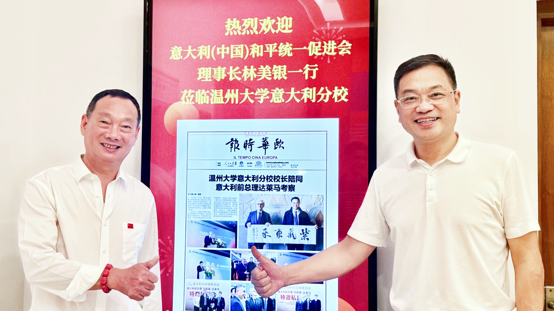 与此同时,林美银理事长一行对分校为中意两国之间,搭建起教育、培训、经贸、信息交流的桥梁,所做出的创新策划倍加赞赏。尤其为未来青年学生的交流、交换,为海外侨胞提供教育培训、辅导、人才输送的亲情关怀,以及为侨胞之间互帮互助、渠道的建立和推广。