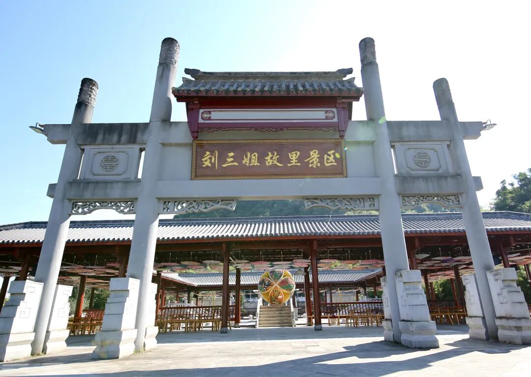走进刘三姐故里景区,沿途分布传歌台、定情树、望妹石等景观,刘三姐、阿牛哥的仿古故居,以及壮寨门、图腾柱、茶楼等建筑错落有致,生动还原了壮族传统生活场景。