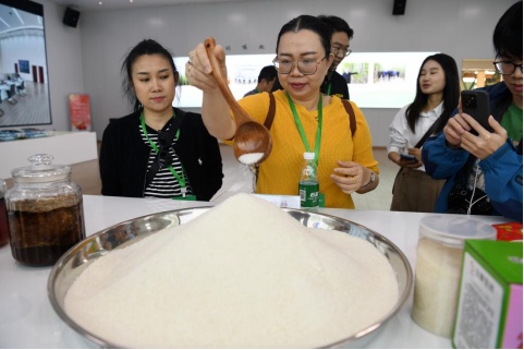 在广西绿联生物科技有限公司,甘蔗榨糖后的价值得到进一步延伸。公司副总经理朱民展示了以蔗渣为原料制成的可降解餐盘,指出蔗渣已成为生产环保材料的优质原料。